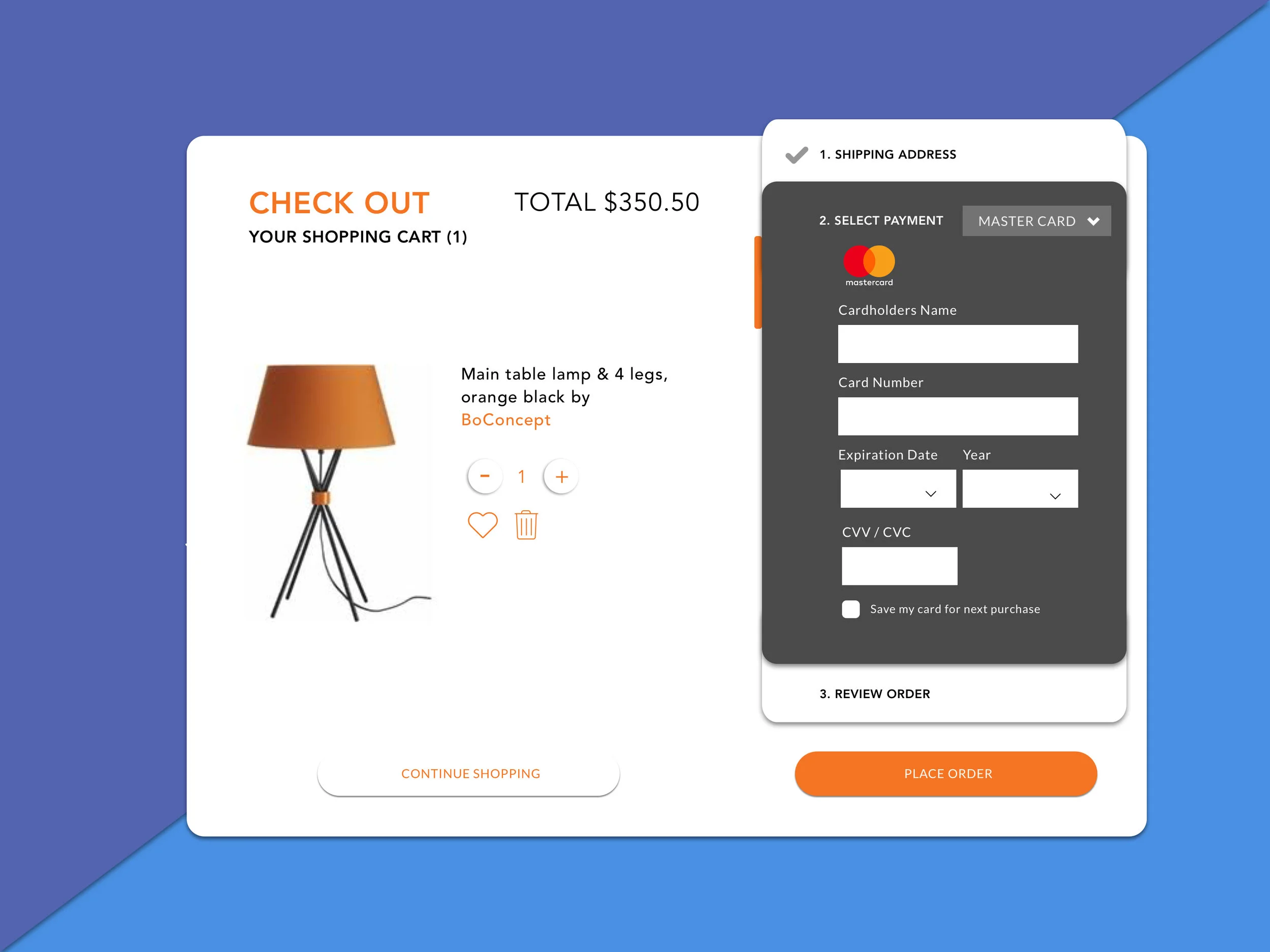 The challenge is to design a credit card checkout form or page. I spent time a little longer because all details should be included. In e-commerce, three steps require users to fill in their pieces of information. For a smooth experience, I decided to create one-page payment check-out which presents all steps that users can see which stage of the checkout process they are on right now, how many steps would take them until the end also if they want to edit any information they can edit without losing their step.