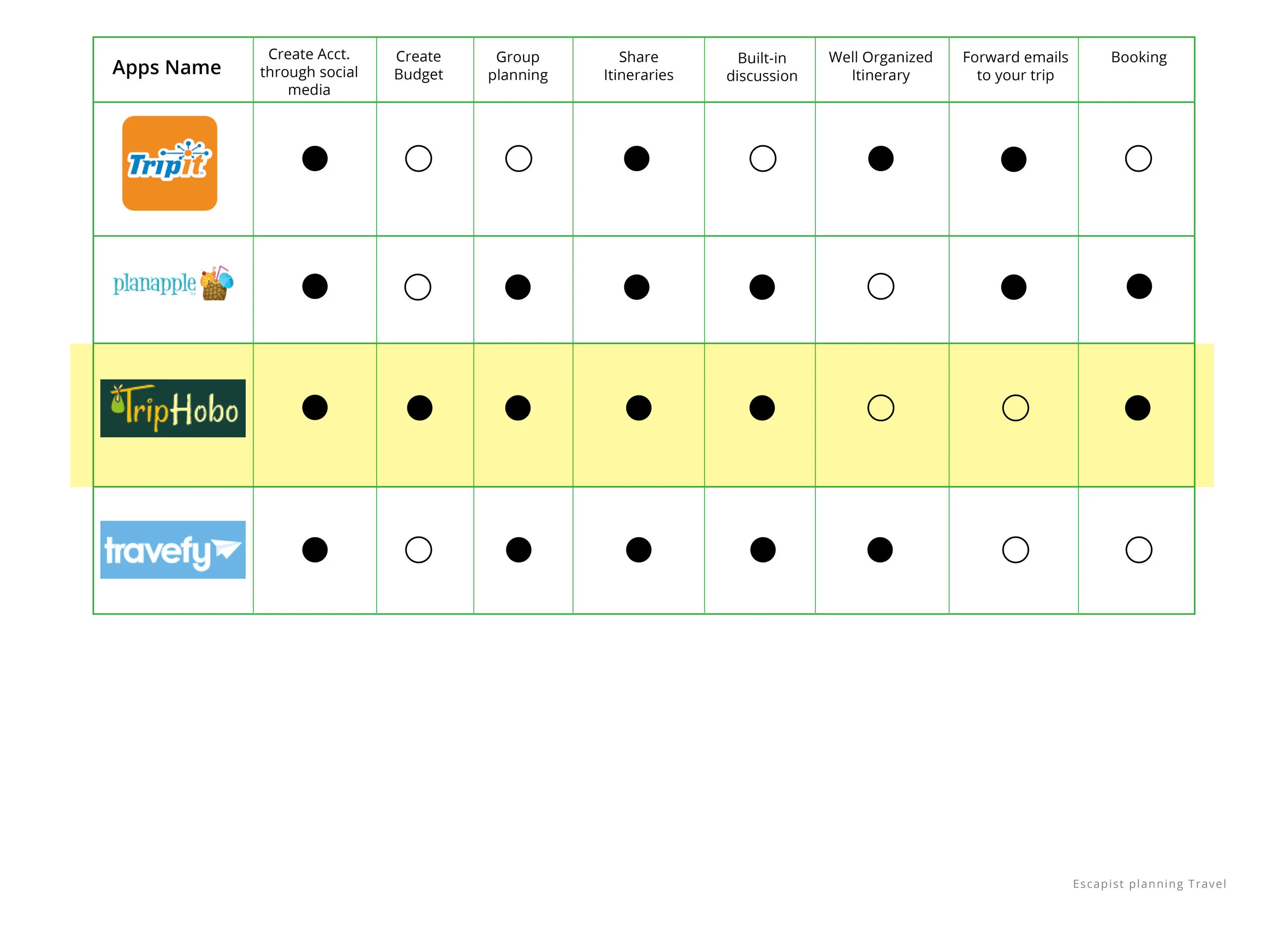 I looked at all the apps for travel that offer you to create a trip and share with friends. Surprisingly I found the main competitor which is TripHobo. As expected, there is truly nothing like Escapist.