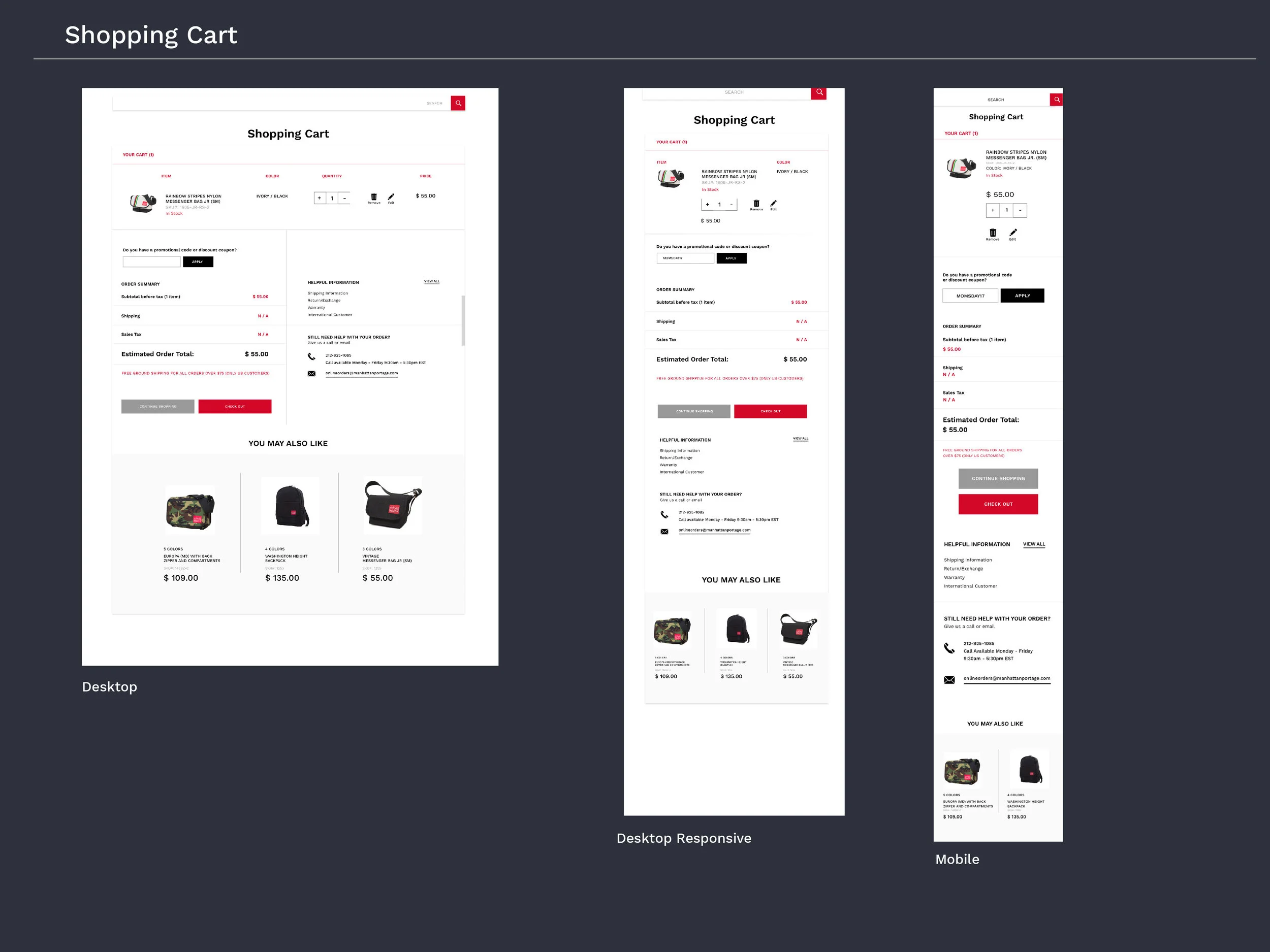 I led the design team of redesigning the customer shopping cart and checkout experience. My responsibilities were experience strategy and design of the responsive layout: Desktop, Tablet and Mobile, created and lead the UX / UI work, conducting user interview and presented these to the company owner. I also worked alongside with my project manager and developer.
