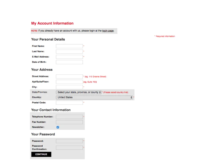 -There are too many personal informations required to fill out and some of them are not necessary such as fax number and date of birthday. Most likely, a customer would abandon at this point, if not much easier in the process.